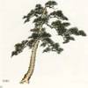 ( 四 ) 松树画法 松树象徵人类之君子风度与长寿。古人多喜爱画松,表现 出松之挺拔苍劲,顶天立地的气概。松皮呈鳞状,画松皮要苍 劲,毛而不光,忌讳太规则的排列。 松叶如针状,有半圆 、 圆形、马尾形、锯齿形等多种不同的画法,松干本直,生於 石隙崖丛则曲。