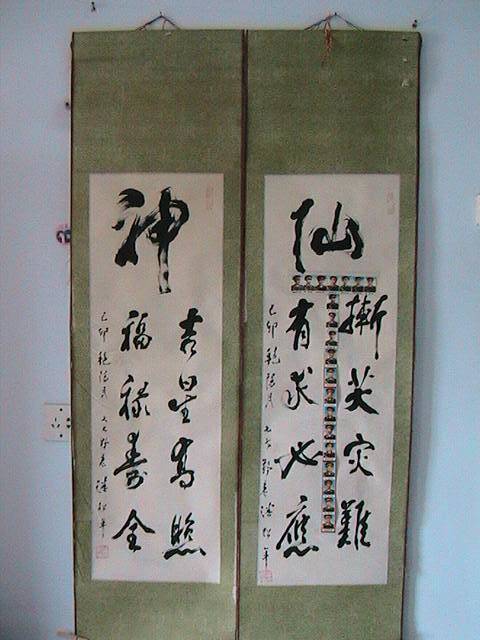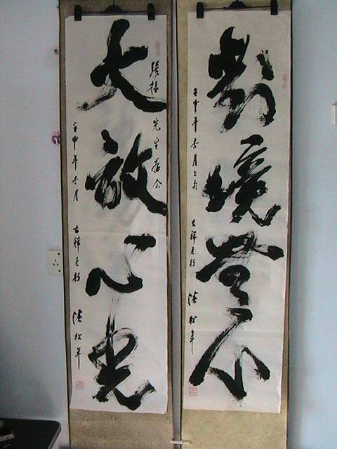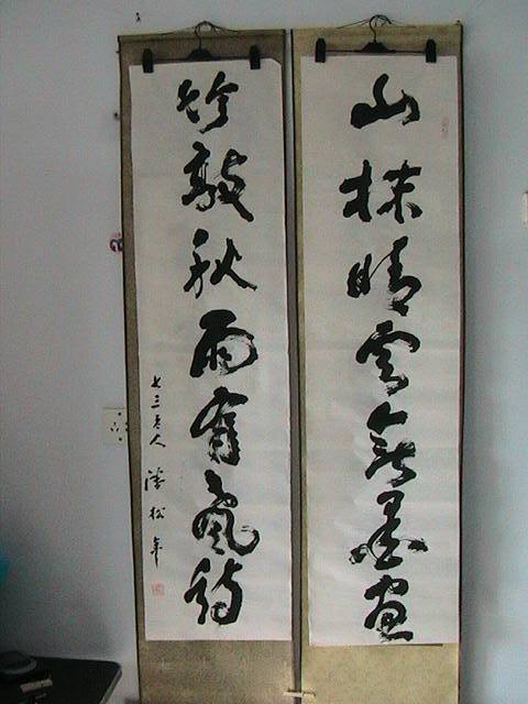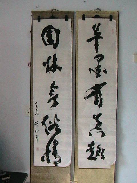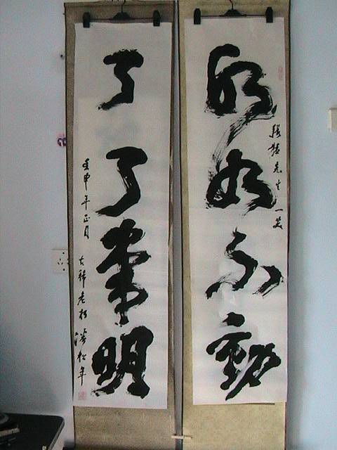 本人经常拜访辽宁兴城潘家窝铺村潘老先生。 潘先生 号松叟 八五老朽 兴城人,北京政法大学毕业,从教40年,现寓居市西郊潘家村。文革中受严重迫害,1987年受新加坡书学会之邀请附狮城参加健力士杯书法大赛评选,任评委。先生如今垂暮之年,深居浅出,境况平淡,偶作书法以自娱,逢一二慕名者畅谈书艺,往往有求必应。先生与我忘年知己。我自评价先生书法当今书坛出其右者不多。先生首推晚清碑学,书法及讲求“力”字。请朋友们欣赏为本人书写的书法精品