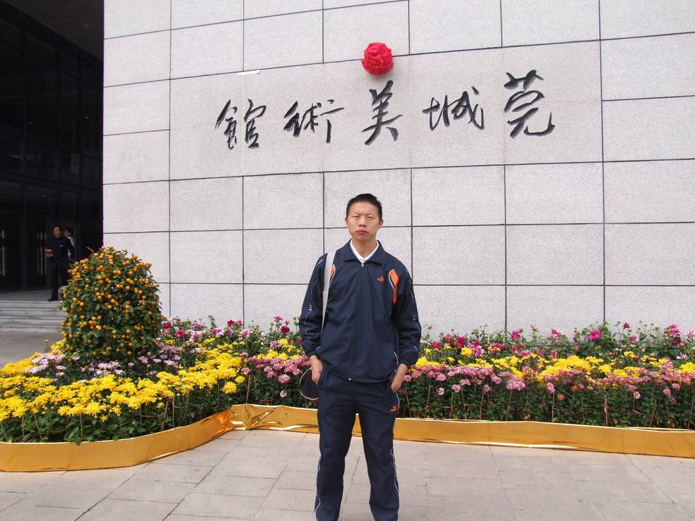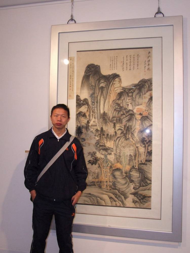 本报记:清风艺术工作室青年书画家清风等人一同参加了08年春节中国当代著名书画名家精品展。图为青年书画家清风在莞城美术舘前留影。