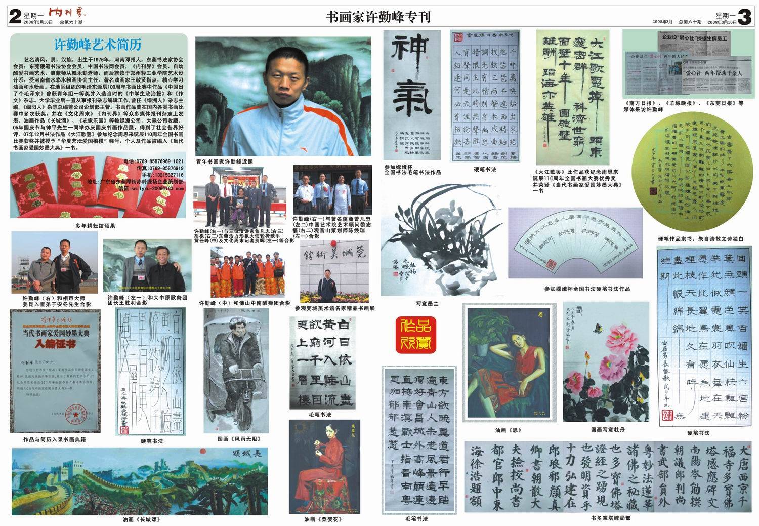 本报讯:本社青年书画家许勤峰被<<内刊界>>出专刊给予了个人艺术简介进行专题报道.
