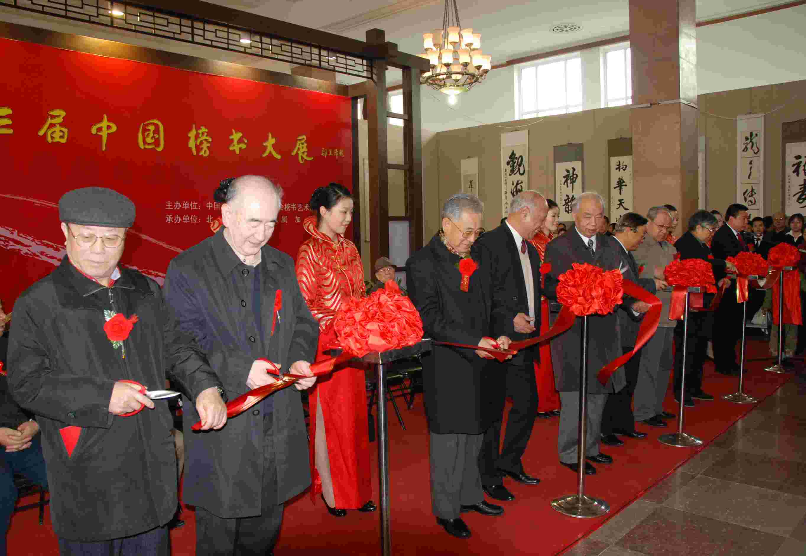 由中国文化艺术发展促进会榜书艺术研究会和北京利环金属加工厂联合举办的“第三届中国榜书大展”,于3月20—24日,在军事博物馆展出。 本届大展共收到来自国内外的作品1000余幅,有法国、加拿大、马来西亚,境内覆盖31个省、市(直辖)、自治区和香港、澳门的榜书作品。评委会从中严格筛选出200多幅佳作参展。这些书法作品中,8尺以上的尺幅占多数,有5—7米高的巨幅。一些少年和中青年作者的榜书水平出乎意料,其作品无论是笔法、结构还是章法、布局,都有其独到之处,既有一定的传统书法功底,又有较强的创新意识和艺术感染力,从而使我们看到了榜书艺术的继承发展,传承有序、后继有人。
