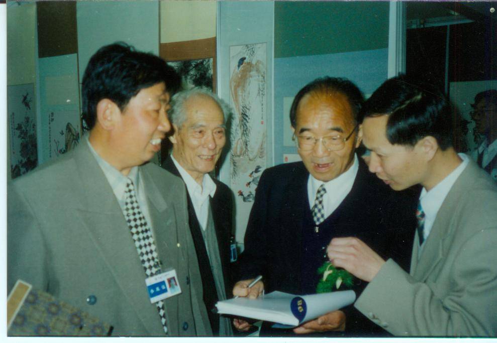 原文化部常务部长高占祥与包喜(左一)商谈书法艺术