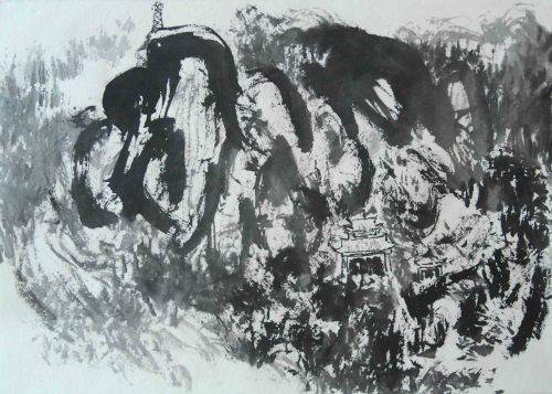 戊子5月中旬应重庆市南川区副区长冯健之邀到南川写生得稿数十幅也.