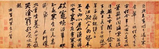 少年时期,我总幻想着拥有一间与山溪幽篁相邻的小木屋,到后来,在不期中,儿时的梦想竟演变成了沉重的现实。当青春饱受山风剥蚀,理想被岁月之剑辟成碎片之时,我寂寥了,我惆怅了。每每此时,我总是会翻出一此书法字帖来欣赏,试图从古人身上找到生命的慰籍。在所有古贤作品中,苏轼的《寒食诗帖》是最令我醉心的,或许是心境相同,产生了心灵共振吧。 苏轼,字子瞻,号东坡居士,眉州眉山人,生于北宋仁宗年间,卒于徽宗建中靖国元年。在中国古代众多文人中,苏轼是我最敬仰的。在一般人眼里,他可能只是一位“惊涛拍岸,卷起千堆雪”的豪放派词人,而在我心中,他是诗人,是词人,是散文家,是绘画大师(有其画作传世,只不过被其文名所盖罢了),更重要的是一位了不起的书法大师。 《寒食诗帖》作于元丰五年,是苏轼谪居黄州时所书。此帖笔致自然沉着,笔画粗壮丰满,字体真行相间。从一字到一行,从一行到一篇,上下左右松紧欹侧,错落有致,浑然一体。字形忽大忽小,极其随意,各具姿态。用笔重者如蹲熊,轻者似掠燕,结体既有“石压蛤蟆”,也有“树梢挂蛇”。通观全篇,有缓起渐快的节奏,有由细而粗的笔姿,亦有始淡终浓的墨趣,不愧为中国书法史上一佳作。 小楼斗室孤灯,任窗外篁竹喧响,铺卷细品,神游其中,别有一番滋味。诗中自叙来黄州三年,生活清苦,每为寒食、清明之雨所苦。纵观全帖,参差错落,起伏跌宕。文以行书起笔,草书收毫,愈写愈豪放,愈写愈洒脱,笔墨与心境相随,心境同笔墨共鸣。始则漫声细诉,娓娓道来,继则放任声腔,或怆然饮泣,或凄然长啸。书法与诗作相得益彰,身世颠沛之悲,家国不宁之怆跃然于纸上。虽无一句写情,却句句关情;无一字写忧,却字字关忧,笔笔含泪。这也许就是《寒食》的妙处,这也许就是苏轼的妙处,这也许就是黄州的妙处…… 透过字里行间,我看到了一个沧桑老人蹒跚的步履,看到了一个文化巨匠悲怆的一生。在往黄州赴任的途上,苏轼一直是哭着走的,他为自己“莫须有”的罪名而悲愤,也为明知他无罪而偏让他走向这片荒凉的朝廷而悲哀……在一个飞着微雨的深秋的黄昏,破车瘦马终于到达了他的目的地--黄州。 这个黄昏是中国历史上最悲怆的黄昏。没有夹道相迎的同僚,没有“久立烟雨”的故友,有的只是苍荒的古道,凄清的破庙。满面尘灰的苏轼没有为这一切而感到惊讶,因为他早已习惯了,习惯了这种悲怆,习惯了这种落寞。 以前,我很喜欢读苏轼在黄州写下的诗词文章,因为他给我编织了一个美丽的梦:皓月高悬,泛舟赤壁;才子佳人,举酒临风,何等的惬意,何等的洒脱。现在想来,这也许也是苏轼为自己编织的一个梦,因为只有美梦才能缩短黑夜的漫长。初到黄州的苏轼,住在一间破庙里,生活凄苦,也许“空庖煮寒菜,破灶烧湿苇”才是他真正的生活写照。 生活的困顿,精神的孤苦,前程的渺茫,一切的一切,都化作他竹笔下的篇章。在无奈中,《寒食》诞生了,在完成《寒食》后,连苏轼自己也没想到自己会写出这般悲怆的文字,也许他自己根本就不曾认了解自己。面对墨迹未干的残纸,他无语,他惆怅,他也没有想到这张发黄的残纸后来竟成了千古的绝响。 一管小小的毛笔,不知承载着多少文人的无奈!今夜,在这间宁静的斗室里,在这盏昏暗的孤灯下,在这片低吟的风声中,我铺开宣纸,泼墨挥毫,去追忆一个无言的绝唱。(刊于《书法报》《梅语》《大地》等) |