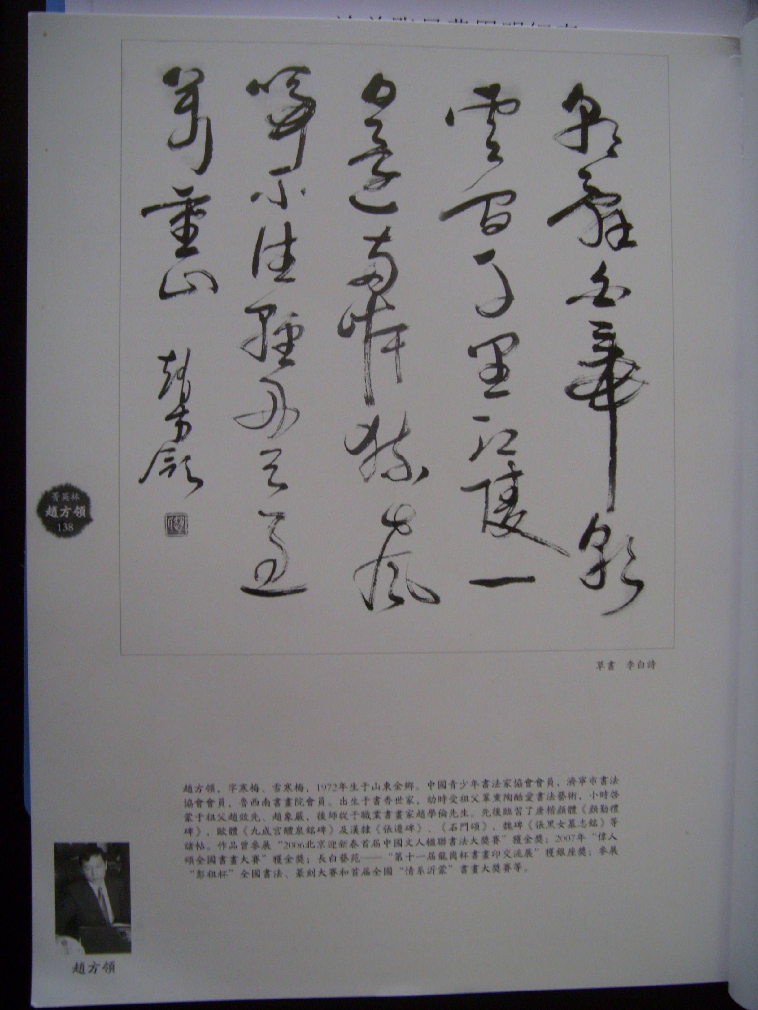 2008年9月赵方领作品入选《中国当代书法美术大展》,其作品入编《中国当代书法美术人物年鉴》2008卷!