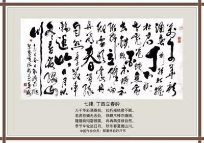 中南海国礼艺术家邱春林丁酉新春应邀在东莞挥毫颇受亲睐中南海国礼艺术家邱春林丁酉新春应邀在东莞挥毫颇受亲睐丁酉春月,应中华丘(邱)氏联谊总会东莞分会常务副会长邱霖霄宗亲盛邀,乃为其东莞分会新的办公室现场挥毫六尺整张《沁園春雪》四尺整张竖幅《海纳百川》和三尺整张《生肖鸡》三幅作品。前两幅为宗亲办公室所书