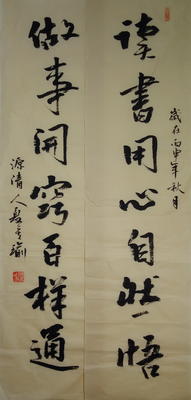 对联夏侯瑜读书用心自然悟做事开窍百样通
