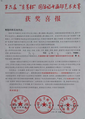 2016年8月19日,收到翰墨薪传美育杯全国教师书法大赛优秀奖荣誉证书、免费作品集和奖品。