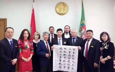 白俄罗斯首都明斯克州执行委员会主席沙比罗·谢苗·鲍里索维奇,近日在明斯克州政府会议室,亲切会见中国书画艺术家代表团!白俄罗斯莫吉翏夫州世界美术大展组委会领导与巴巴克,陈谋,刘瀚锴,董铁棍,邹红平,刘俊等人在一起亲切交谈,期间,刘瀚锴向世界美术大展组委会领导赠送王永革,张媛雅,姬保国作品并在一起合影留