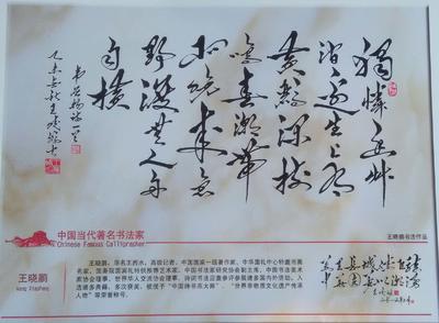 万里城2016.2.12中华文明几千年,文字传承了历史,书法把文字演变成了艺术,使之发扬光大,不能不说是传统文化的一对奇葩。书法虽说是用毛笔书写,但用毛笔写出的字不一定就是书法。初学毛笔字称“大仿”,虽然缺少笔法,结构不美,待经过一段时间的临习会初见成效,始学书法已有雅俗之分。按古人用笔、结构,运用