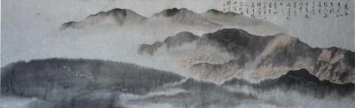 题泼墨山水夏侯瑜2016-2-6其二秀水青山似白龙,探头藏尾见奇峰。丹青有法常无奈,泼墨领先须笔功。