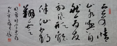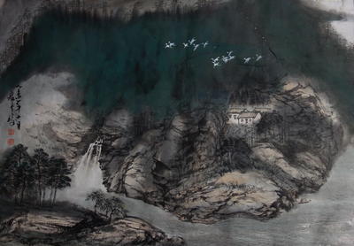 题泼彩山水夏侯瑜2016-2-6青山绿水白云中,藏尾探头只见峰。传统丹青有苦处,我泼墨彩似神功。