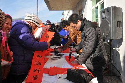 昌图县开展“文化下乡”写春联送福字活动按照昌图县委、县政府关于“红红火火过大年”活动安排,昌图县文化局会同县书协组织书法家开展“文化下乡”写春联送福字活动。2016年1月19日,在县文化局局长林爽、县书协主席郭岩带领下,书法家们来到昌图县太平镇为那里的百姓送上新春的祝福。书法家们冒着严寒,认真的为百