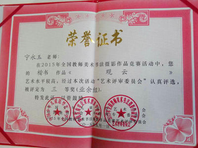 热烈祝贺宁永玉教授参加的2015年第二届翰墨飘香全国书法大赛中,作品夜色枫桥获主委会评选铜奖;书法兰亭序获首届二王杯全国书法大赛优秀奖!!