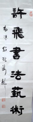 广东楹联书画院院长邹继海为许飞作品册题字广州市湖北襄阳商会名誉会长刘邦田先生在欣赏书法家许飞的书法作品,书法家许飞与广州市湖北襄阳商会名誉会长刘邦田先生合影中国书法美术家协会理事、中国对联专业户、恩师谢莉先生为许飞嵌联中国书法美术家协会理事、中国对联专业户、恩师谢莉先生为许飞撰联中国书画协会副主席林