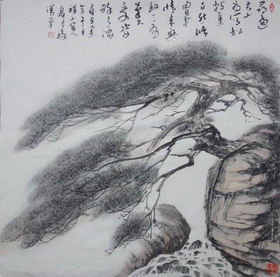 题松石图夏侯瑜2010/10/11青青四季立岩中,霜打雪压不改容。只爱山间云做伴,不随流水尽朝东。