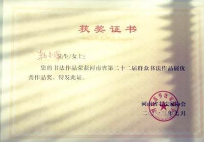 从来也没有想到初次参加“齐式书法”比赛就获得最高奖,而且还是组合奖(正赛一等奖、预赛一等奖、笔划创新奖)。当我接到获奖通知时,感到非常的惊诧,几乎不敢相信我这个仅学得“齐式书法”不到两个月的新手,就能够这么轻易的获奖,实在难以置信。哦,当然本人原先还是有一些书法基础的。后来经过了解才知道之所以能够获