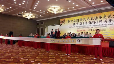柳俊青,受郑州市混元太极拳委員會,混元太极拳第三代传人范学天老师之委託。和北京太极拳武术文化发展中心的誠邀。由中国武术家協會主办的:第四届國際混元太极拳暨首届(志强杯)精英赛。由书法家柳俊青先生用魏碑抄录冯志強先生編著的,怎样修炼混元太极拳的几点纲要(长15.6米x32公分)裝俵成卷。也是混元弟子对