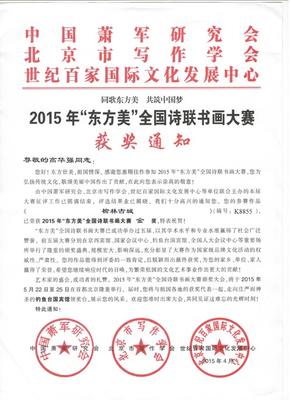 高华强在2015年“东方美”全国诗联书画大赛中获金
