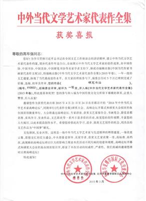 高华强中外当代文学艺术家代表作全集获奖喜报照片