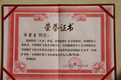 汪荣生荣誉证书展示之二