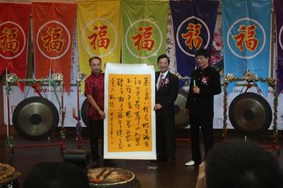 图1在马来西亚展览开幕式的现场,中国驻马来西亚大使馆收藏于工的一幅作品。左为于工,中为中国驻马来西亚全权大使黄惠康,右为活动总策划人中国国学院副院长翟杰教授。图2于工在其作品前与马来西亚前交通部长、马来西亚民族中兴基金会总执行长丹斯里翁诗杰(右)留影。图3在吉隆坡书画展开幕式上,右五为中国驻马来西亚