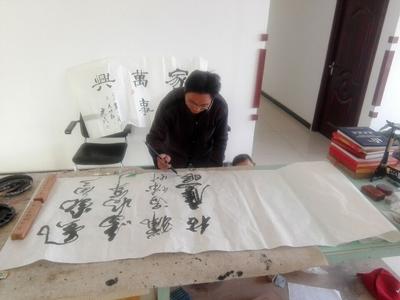 一种任性文/王金泉第一次零距离接触呼和浩特的书家,便碰到了崔天庆。此人身材中等,体格瘦劲,略有秃顶,五官尚属端正,只是笑起时,额头和嘴角的纹路较多,而且复杂,一时半会儿弄不清他的年龄及背景,后听人讲,他也快五十岁了,在部队工作,属军旅书法家。听是军旅书家,我便肃然起敬,自认为生活在军营里,天天正事还