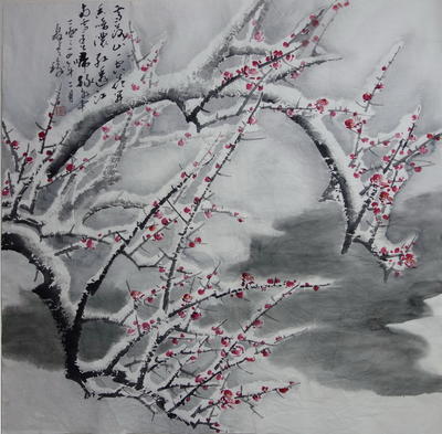 54.江南雪梅2014年2月10日雪落山一空,花开香暗浓。红透江南雪,春归绿水中。