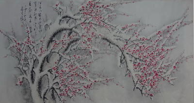 45.颂红梅2014年4月12日伴苦雨成长,迎凄风盛开。红透江南雪,香弥望景台。