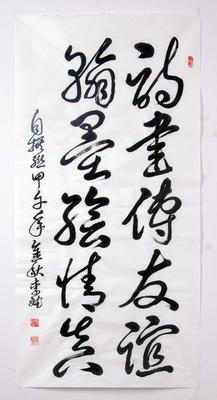 李斌自撰联《诗书传友谊翰墨绘情真》