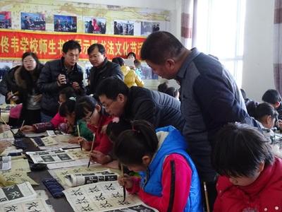 书法志愿者服务队走进昌图佟韦学校12月5日,按照辽宁省文联和省书协的要求;书法志愿者服务队在辽宁省书协理事、铁岭市书协副主席,昌图县书协主席郭岩带领下,一行9人走进昌图佟韦学校。为那里的学生进行了现场书法辅导。在一上午的时间里,书法志愿者分别到19个班,对1120名学生的毛笔书法、硬笔书写进行了手把