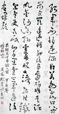 探索第四种纸上元素——对拓宽大草作品传播面的尝试周永刚去年冬天,到北京向刘洪彪先生求教草书,刘先生曾经谈到,用朱液小楷为大草作品调低欣赏难度,以利大草传播,我深以为是。经过一年来的书法学习,我感到书法作品从色彩构成上看,洁白的宣纸与朱红的印章相呼应,黑字和什么相呼应呢?这一元素是否犯孤了呢?能否和灰