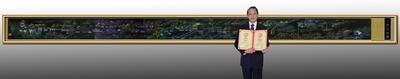 作者与世界首幅配色镭射画《上河月色图》合影