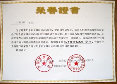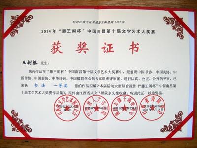 王树榛滕王阁杯获奖证书