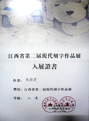 陈德孝入展江西省第二届现代刻字作品展证书