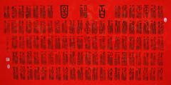 百福图邢占军字沙河钓翁,号郑韩居士,1963年出生于栾川,中国篆书甲骨文资深研究员,现任职:中国剧作家协会会员、中华大地之星“十佳新闻人物”中国时代风采“金奖书画名家”殊荣、清风书画院院士、洛阳雅俗共赏艺术研究院副院长、篆书甲骨文书法研究院院长(分院于新安县漏明崖景区)、莲岳诗书画联谊会名誉会长等职