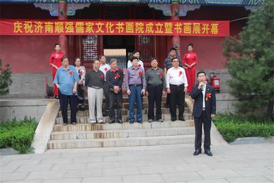在这金风送爽,碧空澄澈的初秋,我们怀着无比喜悦的心情迎来了济南顺强儒家文化书画院成立揭牌仪式暨书画作品展出活动,出席此次揭牌仪式的领导及著名书画家有:沈承俊、刘勤敬、王克泉、王亚非、张百行、滕西奇、王东华、马远新、王文艺、刘彬昌、郑灿铎等。此次揭牌仪式在一片欢乐祥和的气氛中举行。揭牌仪式结束后,出席