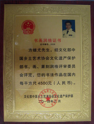 方继尤证书