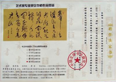 证1.2008年12月17日娄世忠先生在首届全国毛体书法颁奖大会上被授于“毛体十佳”证2.娄世忠先生在中国毛体书法家协会成立大会上被聘任为常务理事的证书