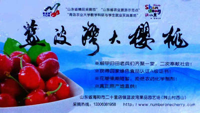 我为海阳”蓝波湾大樱桃”题字,正是樱桃上市时。