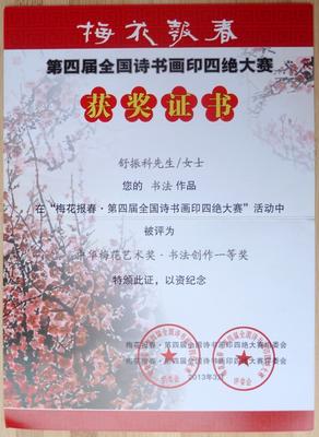 仇沛文获“2014年全球华侨华人书画大赛”书法二等奖2014年全球华侨华人书画大赛获奖公告http://bbs.china-shufajia.com/thread-447121-1-1.html