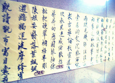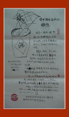 《中国书法网》杂想:永字八法的,横,竖,撇,捺,点,编织起了中国书法网。它牵着无数艺术家的心,它编着无数艺术家的梦。年青人,年老人,男人,女人,都在这里寻求着美,寻找着平衡,探寻着和谐。执著的,痴痴的,每张脸都是那样的可敬,又可爱。每杆笔,每滴墨,每张纸都呈现着艺术家与大自然的对话。点,山,是那样的