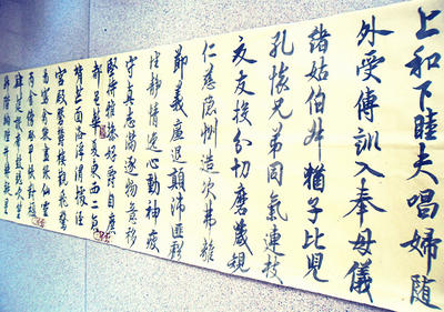 “字如其人”在海东身上得到了充分验证。作为北方人,其一言一行都是爽直且大方的,偶尔的腼腆反而增添了其人格魅力。观照其作品,其艺术感知着实“演绎”着其性格状态,放浪形骸的大草时有极细腻的“交待”,这种本真化的艺术值得推崇,也是方向。王亚洲(中国书协理事、草书委员会委员、安徽省书协副主席兼秘书长、安徽省
