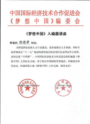 《梦想中国》大型文献入编邀请函