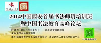 2014中国西安首届全国书法师资培训班暨书法教育高峰论坛2014中国—西安首届全国书法师资培训班暨中国书法教育高峰论坛为了贯彻教育部《关于在中小学开展书法教育的意见》文件精神,落实《中小学书法教育指导纲要》,探讨开展中小学书法教育的有效方法和途径,交流书法教学技术和方法,探索校外书法教育机构市场化运