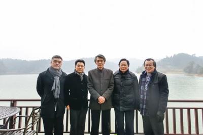 周翔2015年12月在江西新余仙女湖与中国书协副主席刘洪彪等合影留念