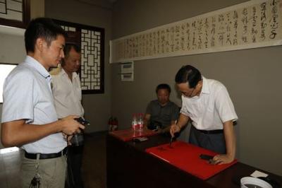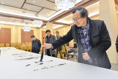 周翔2015年12月在江西新余仙女湖与中国书协副主席刘洪彪等共同创作百米长卷掠影