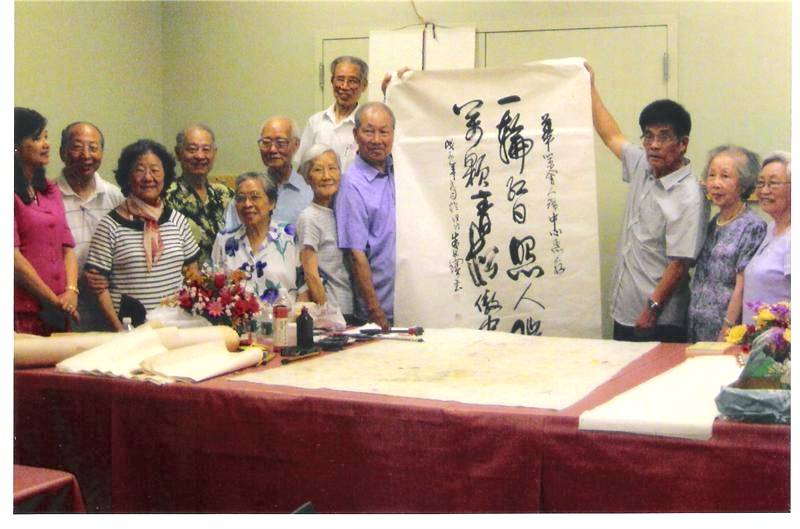 纽约琴棋书画协会授予朱忠宝教授为荣誉会长之后,朱老师献上墨宝与协会工作人员交流祖