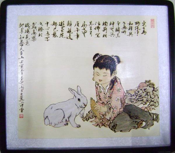 烙画:又名烫画。初为烙花,后成烙画。其源于西汉,盛于东汉。期间几经衰落,后虽被清代艺人重新整理,形成以河南为主的烙画群体!现代烙画是利用加热300-800摄氏度的特制铁烙笔和利用220v的电烙铁通过碳化原理、控温技巧以及熟练的绘画技艺,在木板、宣纸、丝绢等材料上作画。画面呈茶褐色,古朴典雅,别具一格. 郑州碧波园珍宝大世界烙艺阁画廊主要经营木板烙画,烙画的花色品种丰富,山水、花鸟、人物、动物、肖像、书法、中国画、西洋画、卡通画、大中堂、小中堂、条屏、壁画以及数十米的长卷、制作招牌、各种艺术品装裱,题材广泛,应有尽有,可以根据顾客需要的图案尺寸定做!现在正在招收学员欢迎有兴趣的朋友加入! 地址:郑州市碧波园珍宝大世界3楼3210室!联系人:刘松峰 电话:13203893299