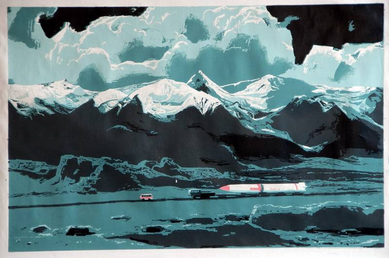 吴宝贵版画1《东风西渡》版画 70cm×45cm